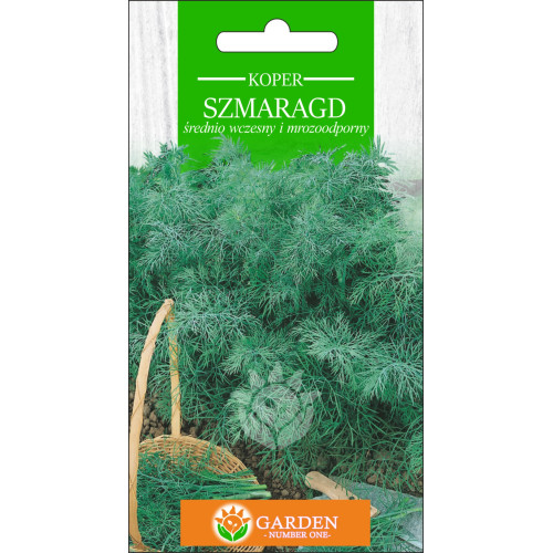 Koper Szmaragd to jedna z najpopularniejszych odmian o wyjątkowo wysokiej wydajności i intensywnie zielonych, pachnących liściach. Jest ceniony za swój bogaty aromat i delikatną strukturę liści, które są doskonałe zarówno do świeżego spożycia, jak i do konserwowania. Szmaragd to odmiana wczesna, co pozwala na szybkie zbiory i wielokrotne cięcie w ciągu sezonu. Roślina ma zwartą, ale dobrze rozkrzewioną budowę, co zapewnia jej stabilność i równomierny wzrost.